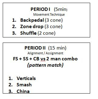 I have been afforded a great opportunity to take the back 5 defenders in the secondary in our Cover 3 defense and rep every player on playing corner, strong safety, and free safety. This is going to be extremely beneficial for these young (and some veteran) players towards understanding their role within the coverage (and support) and seeing the big picture.